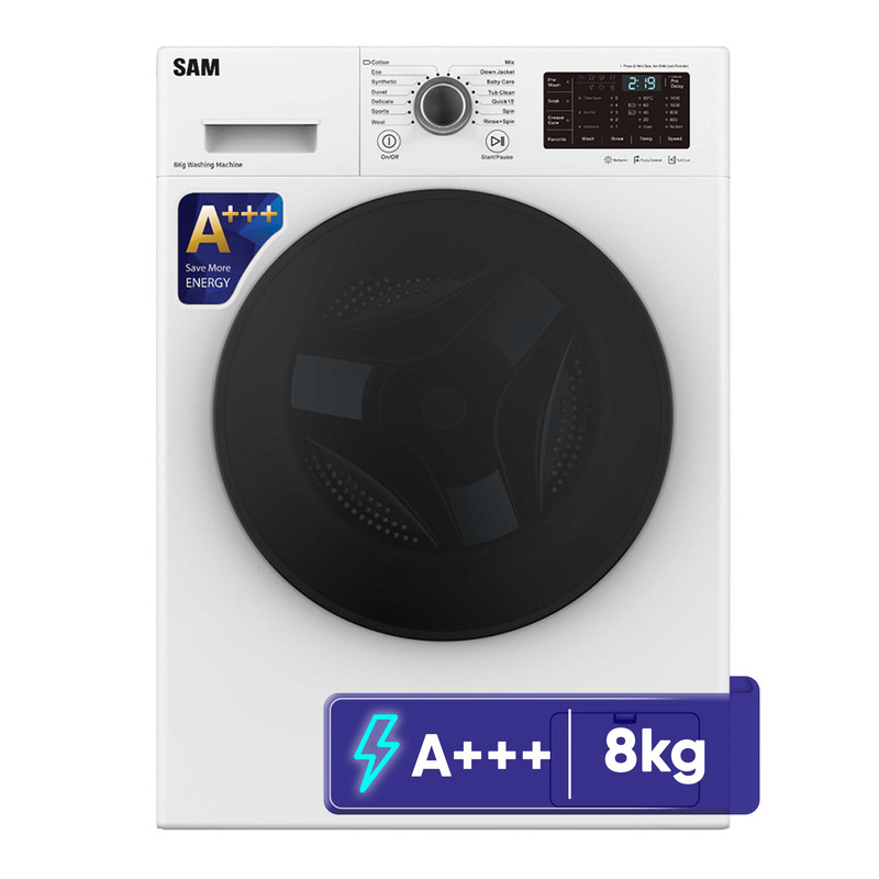 ماشین لباسشویی 8 کیلوگرم اتوماتیک سام مدل BL-Q1465W ظرفیت 8 کیلوگرم