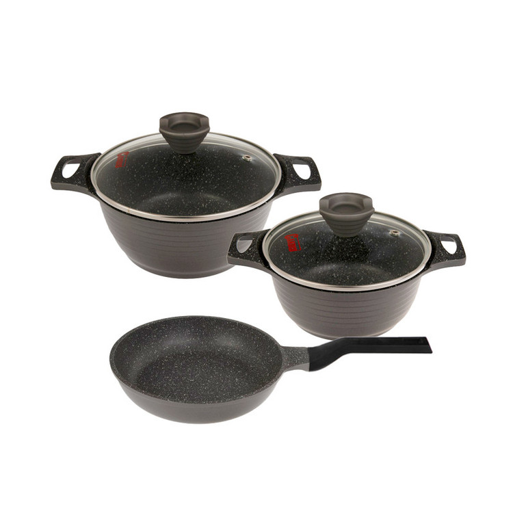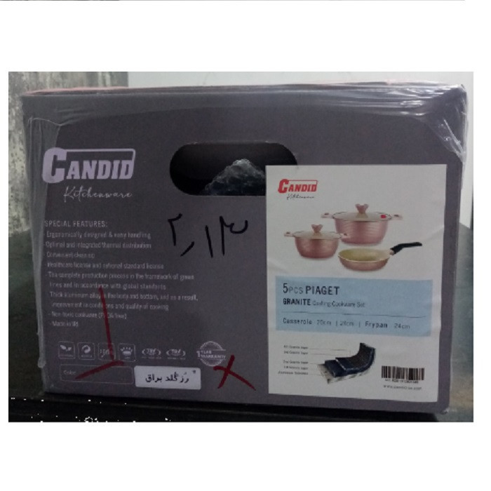 وزن ظروف: قابلمه سایز ۲۰: 1569 گرم - قابلمه سایز ۲۴: 2129 گرم - تابه تک دسته سایز ۲۴: ۷۷۵ گرم