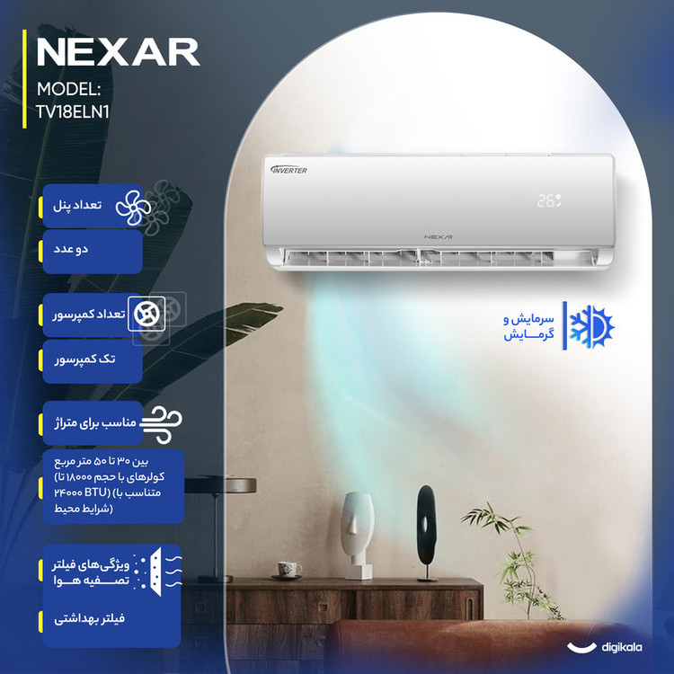 نمایشگر دیجیتال روی ریموت , کنترل کامل تنظیمات دما و فن , تنظیم تایمر از طریق ریموت , قابلیت فعالسازی حالت خواب , تنظیم جهت پرتاب باد از راه دور , قابلیت تنظیم حالت توربو از ریموت