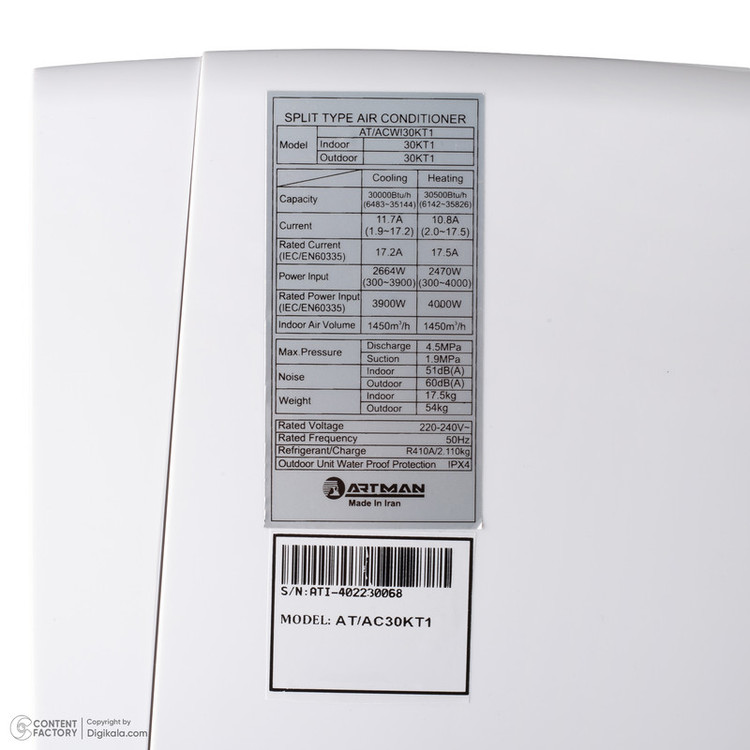 نوع گاز (مبرد): R410A