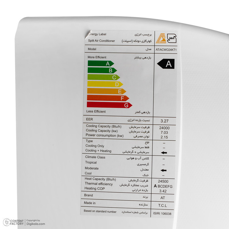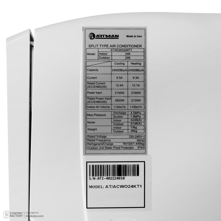 نوع گاز (مبرد): R410A