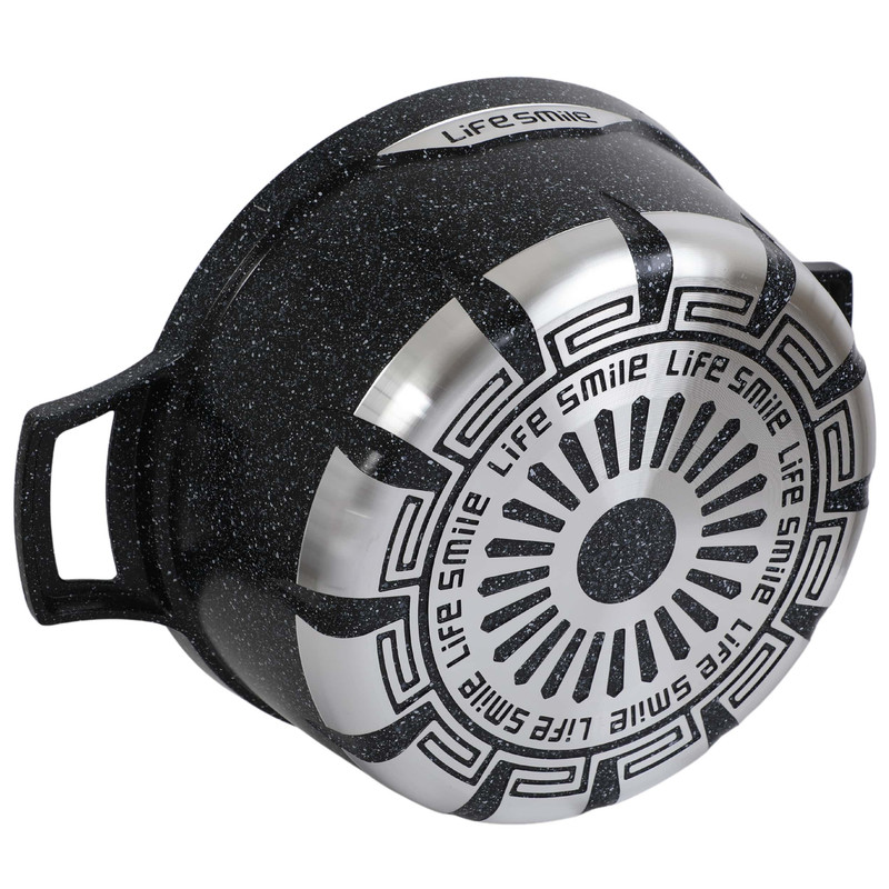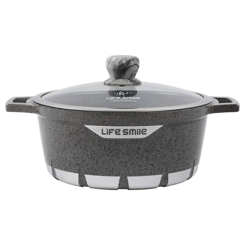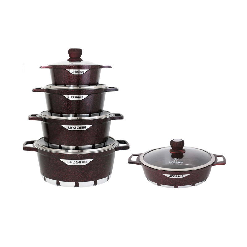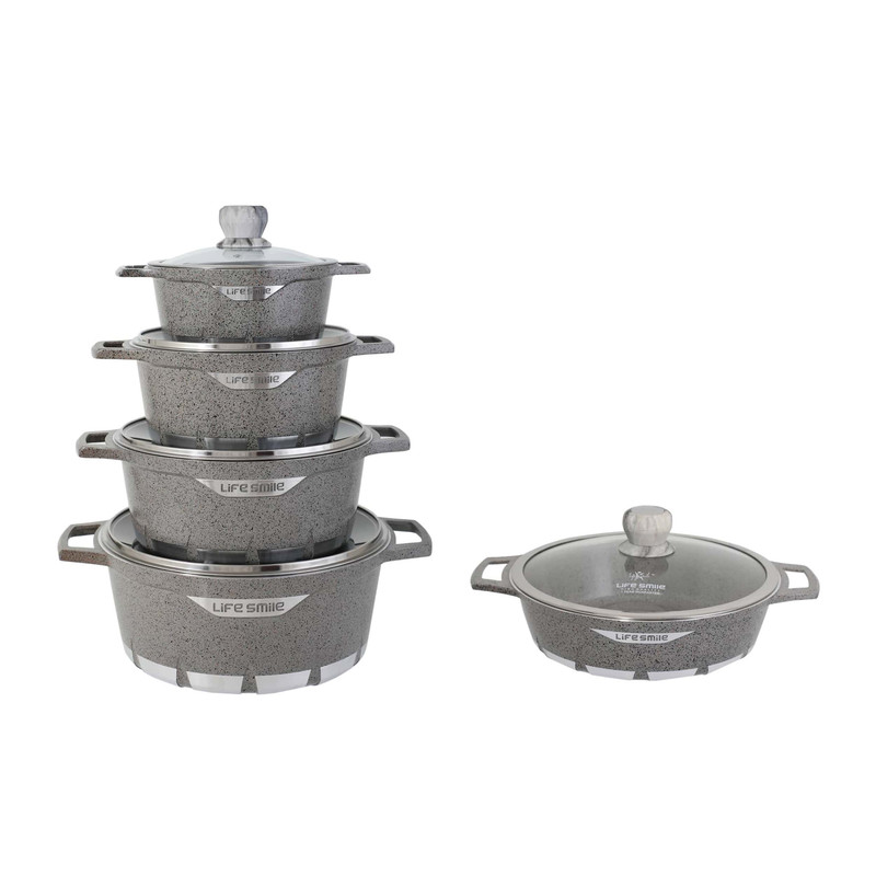 سرویس قابلمه چدنی لایف اسمایل مدل FLCM10دارای چهار عدد قابلمه چدنی در اندازه های 20 - 24 - 28 -32 و تابه در اندازه 28 با درب شیشه ای بسیار بادوام و دسته های نسوز (دسته های قابلمه از جنس خود بدنه یعنی چدنی ) می باشند این سرویس قابلمه کیفیت ساخت بسیار بسیار بالایی دارد . کفه بیرونی قابلمه طوری طراحی شده است که گرما را بسیار سریع جذب خود کرده و در نتیجه قابلمه سریعتر از سایر قابلمه ها داغ خواهد شد و مزیت دیگر آن این است که طراحی فوق العاده کف بیرونی آن باعث می شود قابلمه مدتی تمام داغ بماند و در نتیجه غذای شما بعد از خاموش کردن شعله گاز مدتی داغ بماند . درب شیشه ای و شفاف از جنس پیرکس باعث می شود در هنگام پخت غذا براحتی محتویات قابلمه را مشاهده و مراحل پخت غذا را مشاهده کرد. پیرکس در مقابل حرارت بسیار مقاوم است . شستشوی بسیار راحت و تنها با یک ابر از مزایای ظروف گرانیتی است که استفاده از آن را بیش از پیش راحت کرده است.