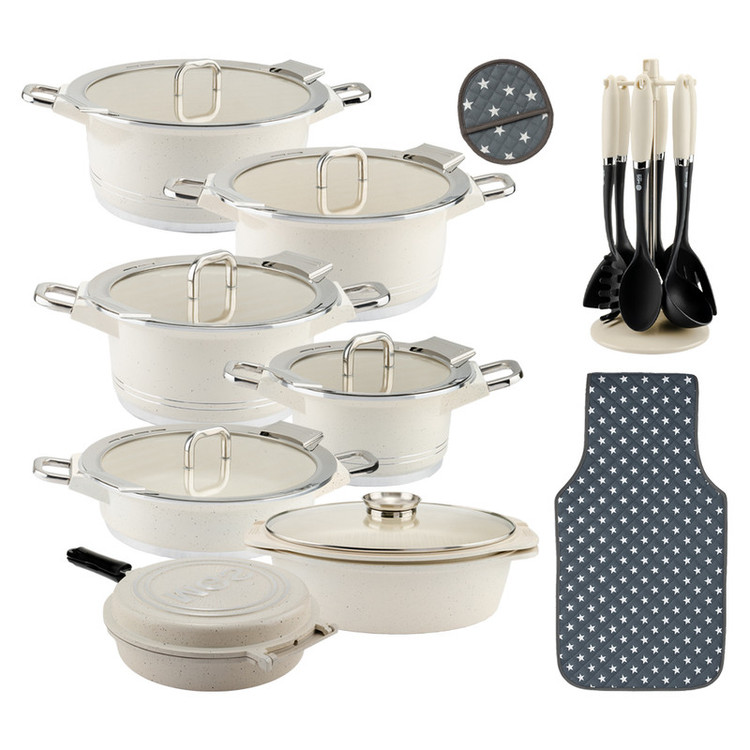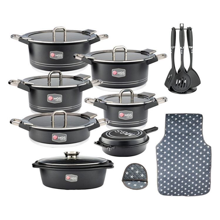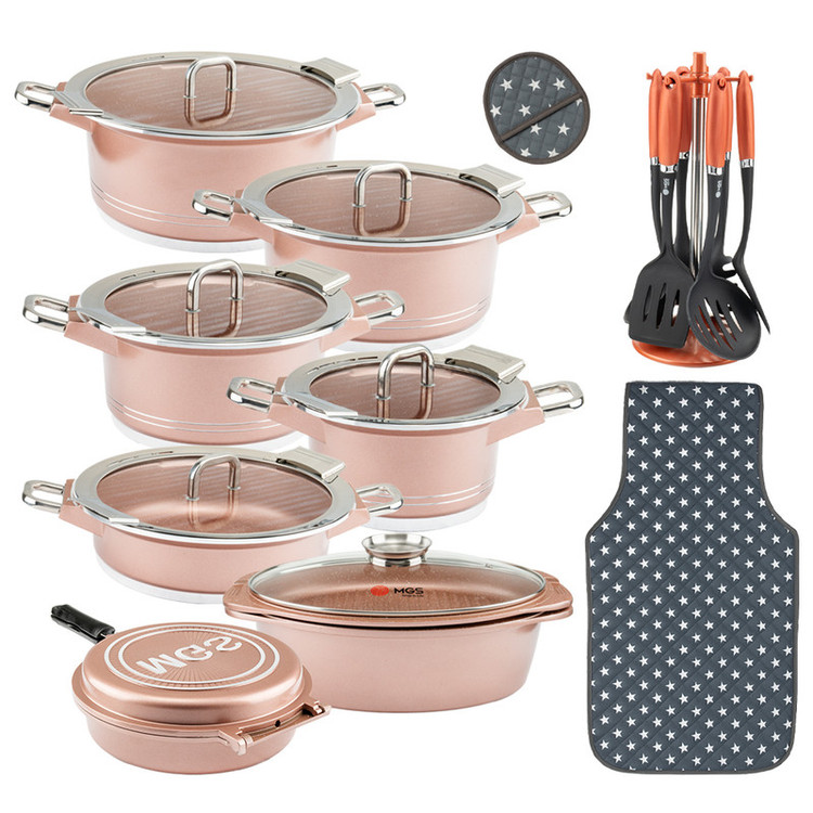 اقلام سرویس: قابلمه , تابه , پیشبند , کفگیر , ملاقه , دستگیره