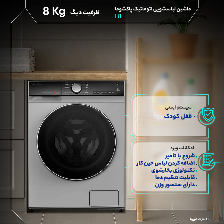 ماشین لباسشویی 8 کیلوگرم اتوماتیک پاکشوما مدل L8