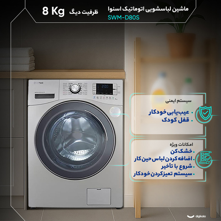 ماشین لباسشویی 8 کیلوگرم اتوماتیک اسنوا مدل SWM-D80S