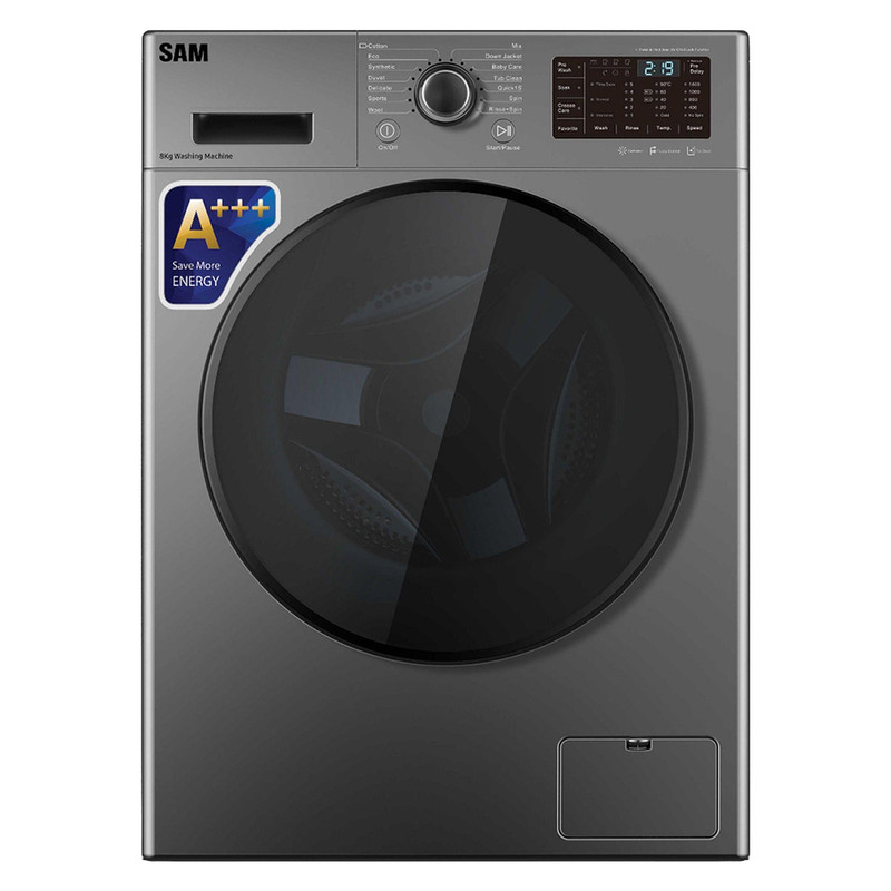ماشین لباسشویی سام مدل BL-P1465/I یک دستگاه اتوماتیک با درب از جلو و ظرفیت ۹ کیلوگرم است که گزینهای ایدهآل برای خانوادههای متوسط و پرجمعیت محسوب میشود. این مدل با برخورداری از موتور تسمهای BLDC با اینورتر و سرعت ۱۴۰۰ دور در دقیقه، عملکردی قوی و مصرف انرژی بهینه را ارائه میدهد. این مدل از طراحی ساده و مدرنی بهره میبرد که به راحتی با فضای آشپزخانه یا رختشویخانه هماهنگ میشود. ابعاد آن هم شامل ارتفاع ۸۵ سانتیمتر، عمق ۶۰ سانتیمتر و پهنای ۶۰ سانتیمتر است که به سادگی در هر فضای استانداردی جای میگیرد. درب دستگاه با زاویه مناسب باز میشود و جهت باز شدن آن به سمت چپ است، که کار بارگیری و تخلیه لباسها را آسانتر میکند. این ماشین لباسشویی دارای رتبه انرژی A+++ است که نشاندهنده مصرف کم برق و بازدهی بالای آن است. همچنین، میزان مصرف آب آن رده B را دارد که در مقایسه با برخی مدلهای مشابه، مصرف متعادلی محسوب میشود. وجود موتور BLDC اینورتر باعث کاهش مصرف انرژی، افزایش عمر مفید دستگاه و کاهش میزان صدای موتور در حین کار میشود. ماشین لباسشویی سام مدل BL-P1465/I دارای ۱۴ برنامه شستوشو است که به کاربران امکان میدهد بسته به نوع پارچه و میزان آلودگی، برنامهای متناسب انتخاب کنند. از جمله مهمترین برنامهها میتوان به شستوشوی سریع اشاره کرد که گزینهای مناسب برای مواقعی است که زمان کمی برای شستوشو دارید. علاوه بر آن، برنامه پیش شستوشو هم در این مدل تعبیه شده است که به از بین بردن لکههای سخت و آلودگیهای عمیق کمک میکند. یکی از ویژگیهای کاربردی این مدل، قابلیت اضافه کردن لباس حین کار است که به شما این امکان را میدهد اگر لباسی را فراموش کردید، در حین کار دستگاه آن را اضافه کنید. همچنین، نمایشگر LED وضعیت شستوشو را نشان میدهد و امکان کنترل بهتر فرایند شستوشو را فراهم میکند. برای امنیت بیشتر، این مدل به قفل کودک مجهز شده است تا از تغییر تنظیمات دستگاه توسط کودکان جلوگیری شود. همچنین، لولههای ورودی آب سرد و گرم باعث افزایش کارایی و تنظیم بهتر دمای آب برای شستوشوی بهینه میشوند.