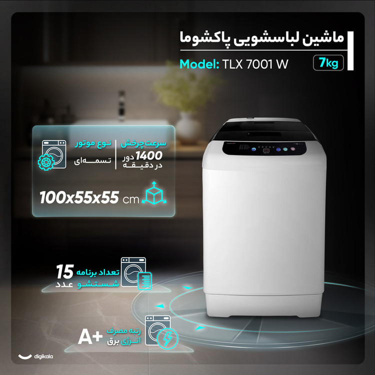 ماشین لباسشویی سطلی 7 کیلوگرم اتوماتیک پاکشوما مدل TX7