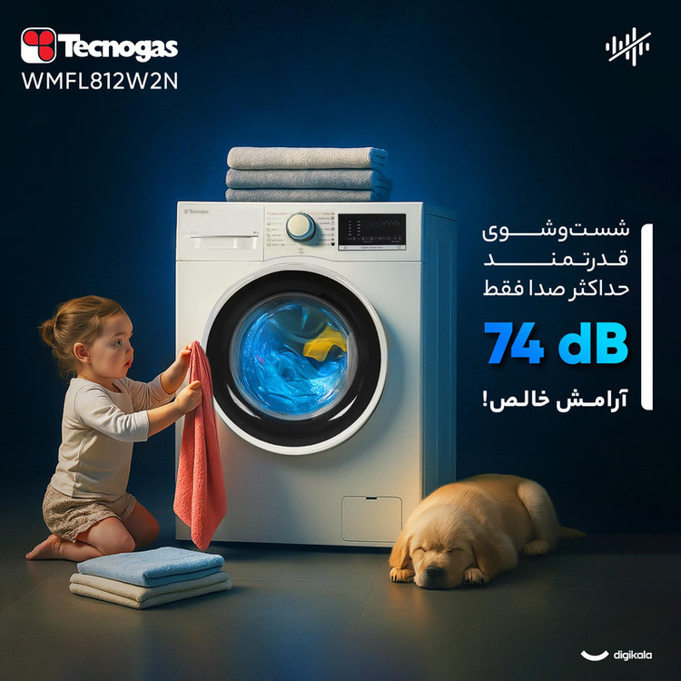 ماشین لباسشویی اتوماتیک تکنوگاز مدل WMFL812W2N با ظرفیت ۸ کیلوگرم برای خانوادههایی طراحی شده است که دوام، مصرف بهینه و عملکرد دقیق را در قالب دستگاهی مدرن میخواهند. موتور اینورتر با سرعت چرخش ۱۲۰۰ دور در دقیقه شستوشویی پرقدرت و در عین حال کمصدا را فراهم میکند. میزان نویز ۷۰ دسیبل در محدودهای مناسب قرار دارد و رده انرژی B همراه با مصرف آب A کارایی اقتصادی دستگاه را نشان میدهد. میزان مصرف آب در هر چرخه ۴۸ لیتر و مصرف برق ۱.۱ کیلوواتساعت است که بازده مصرفی مطلوبی را تضمین میکند.