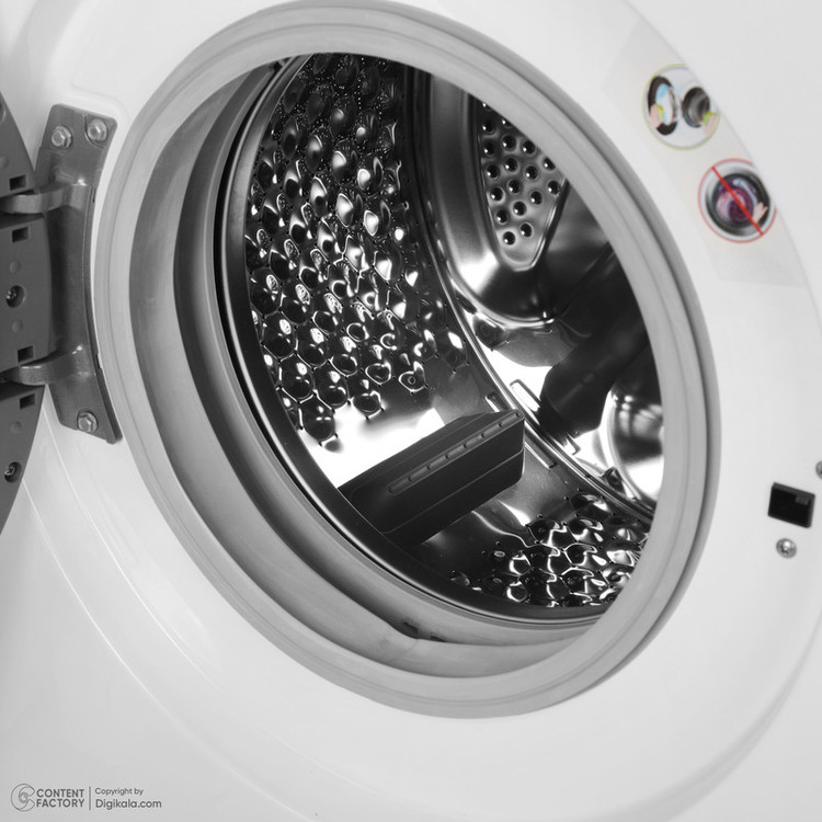 بدنه از استیل مقاوم و دیگ از جنس استیل ضدزنگ با طراحی الماسه ساخته شده تا در برابر خوردگی و آسیب به پارچه مقاومت بالایی داشته باشد. دهانه ۳۳ سانتیمتری با زاویه باز شدن ۱۵۰ درجه امکان بارگیری آسان را فراهم میسازد. درب از جلو و جهت باز شدن آن به سمت چپ برای استفاده در فضاهای استاندارد خانگی مناسب است. پنل دیجیتال مرکزی در کنار کنترلهای چرخشی و دکمهای، نحوه کار دستگاه را ساده و دقیق کرده است.
