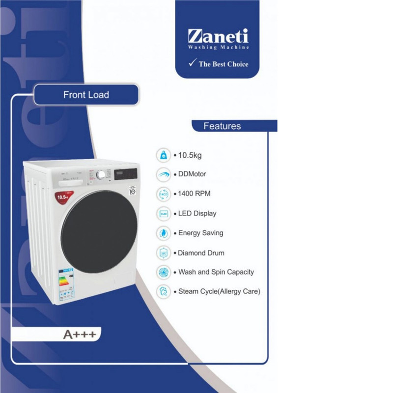 این ماشین لباسشویی ویژگیهایی دارد که این محصول را به یک انتخاب هوشمندانه برای هر خانهای تبدیل کرده است. امکاناتی از جمله: موتور هوشمند، سیستم عیبیاب هوشمند، رده مصرف انرژی A+++ آن و ...؛ تولید کننده این محصول، در طراحی ماشین لباسشویی 10,5 کیلویی زانِتی از فناوری جدید استفاده کرده است که در نتیجۀ آن تسمه از موتور حذف شده است. این محصول از موتور هوشمند دایرکت درایو بهره میبرد بدینصورت که موتور به صورت مستقیم به دیگ شستشو متصل شدهاست. از مزایای موتور اینورتر دایرکت درایو میتوان به کاهش مصرف انرژی و کاهش لرزش و صدا در زمان شستشوی لباس اشاره کرد.