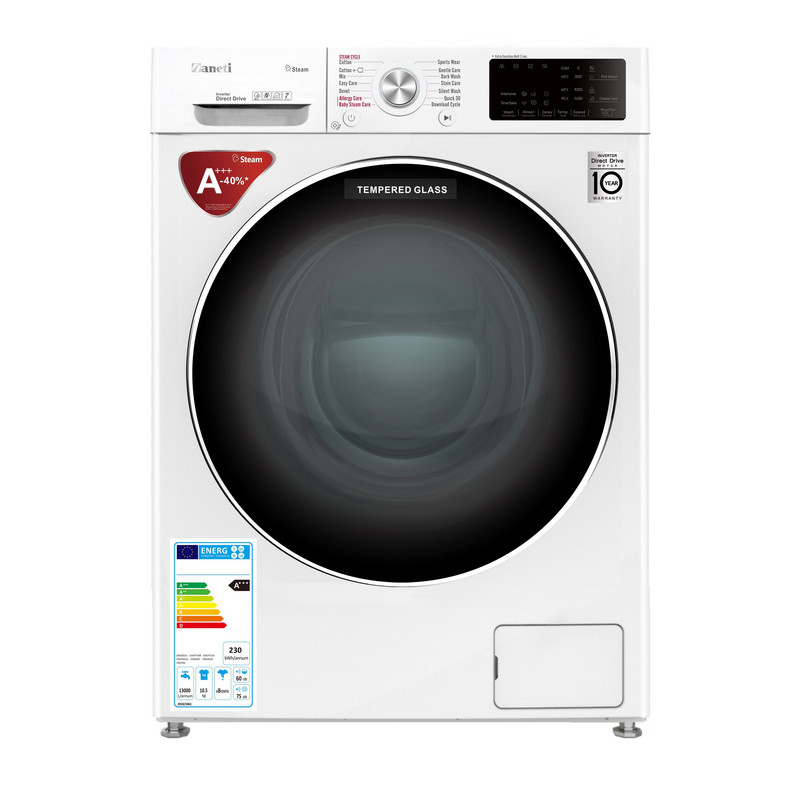 ماشین لباسشویی 10,5 کیلویی زانِتی یکی از محصولات جدید تولید شده توسط برند زانتی است که مزایای بسیاری دارد. این ماشین لباسشویی مجهز به امکانات بروز و کاربردی است و به همین دلیل با استقبال زیاد مصرف کنندگان مواجه شده است. ماشین لباسشویی زانتی در دو رنگ سفید و سیلور دارای 18 برنامه شستشو است که با استفاده از آنها میتوانید انواع لباسها را با هر میزان آلودگی به سادگی شستشو دهید. این محصول با ظرفیت حداقل 5 کیلوگرم و حداکثر 10.5 کیلوگرم، دستگاه مناسبی برای شستشوی لباس خانوادههای متوسط و رو به بالا است. این مدل از ماشین لباسشویی زانتی دارای مصرف انرژی +++A ، صفحه نمایش LED، موتور بدون تسمه دایرکت درایو، سرعت چرخش موتور 1400 دور در دقیقه، سیستم عیبیاب هوشمند، قفل کودک است.
