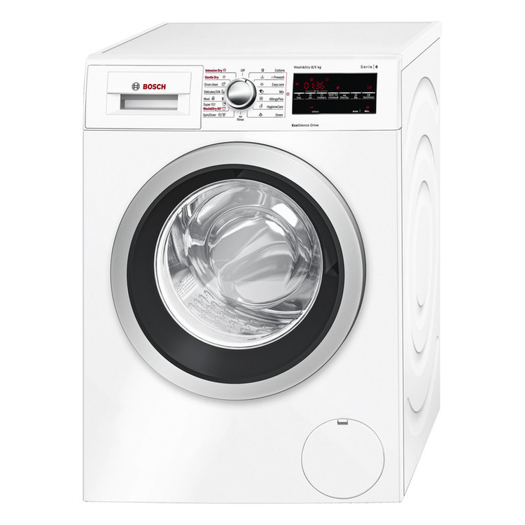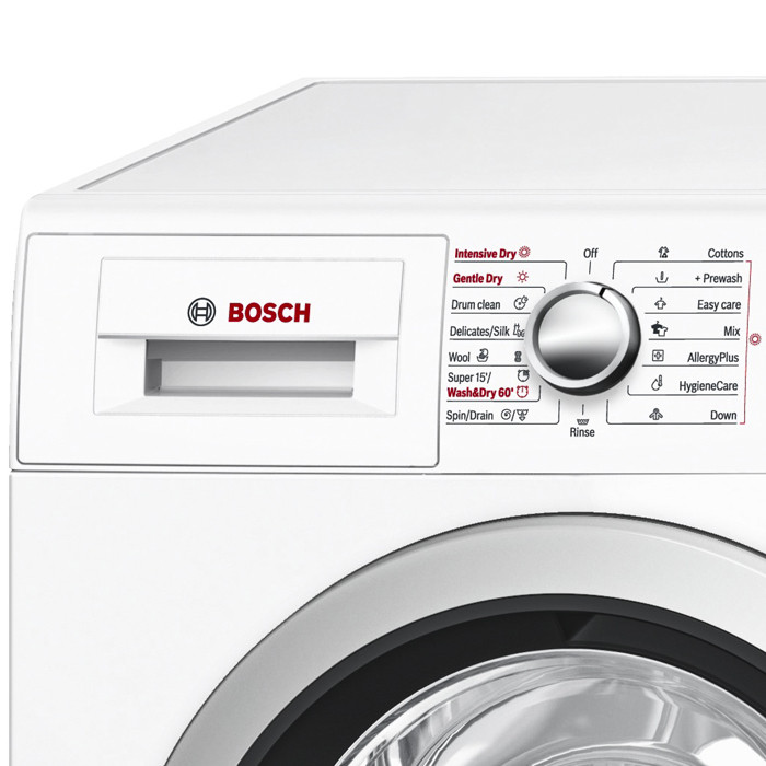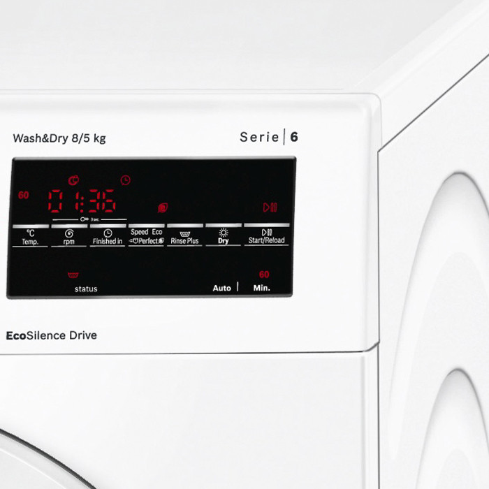 ماشین لباسشویی بوش مدل WVG30460IR با ظرفیت 8 کیلوگرم و سرعت خشک کن 1500 دور در دقیقه از محصولات باکیفیت این شرکت است که ضمن برخورداری از فناوریها و قابلیتهای متعدد، مجهز به خشک کن 100 درصد نیز می باشد. این دستگاه از سنسور آب و فناوری ActiveWater بهره میبرد تا ضمن کنترل خودکار میزان البسه کثیف، از مقدار آب لازم استفاده کند و موجب صرفهجویی در مصرف آب و انرژی شود. ماشین لباسشویی بوش مدل WVG30460IR دارای رده مصرف انرژی +++A است که نشان دهنده مصرف بسیار پایین این مدل است. صفحهنمایش زیبا، نمایانگر عملکرد و اطلاعات برنامههای انتخاب شده است. برنامهها و آپشنهای دستگاه توسط دکمهها و پیچ تنظیم قابل انتخاب هستند.