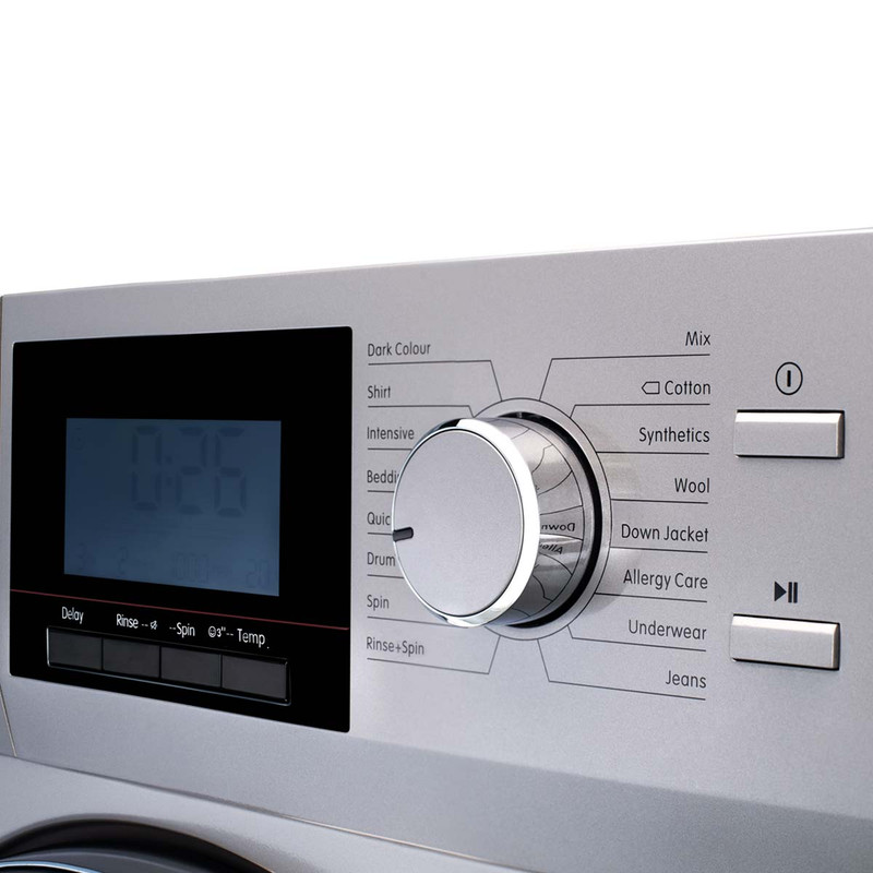 ماشین لباسشویی تی سی ال مدل M84-AWBL/ASBL ظرفیت 8 کیلوگرم با 16 برنامه یکی از ماشین لباسشوییهای خوب و باکیفیت موجود در بازار است. این ماشین لباسشویی قابلیت تنظیم دما در حالتهای آب سرد و یا با دمای 20، 30، 40، 60 و 95 را دارد و از ویژگیهای آن این است که میتوانید به آن برنامه دهید که بین 3 تا 24 ساعت آینده چه زمانی روشن شده و شروع به کار کند. این ماشین لباسشویی دارای قفل کودک است و میتوانید برنامههای لباس کتان، لباس مشکی، لباهای پشمی، پیش شستشو، لباسهای ورزشی را برای آن تعیین کنید. همچنین میتوانید با برنامهی ضد آلرژی آن لباسهای کسانی که به مواد شوینده آلرژی دارند را مورد شستشو قرار دهید. این ماشین لباسشویی صدای کمی دارد به همین خاطر استفاده از آن حتی شبها شما را آزار نخواهد داد. این ماشین لباسشویی همچنین دارای برنامه اختصاصی برای شستن لباس زیر، ژاکتها و لباسهای جین است که این برنامهها بسیار کاربردی بوده و باعث میشوند که امکان آسیب رسیدن به لباسهای شما حین شستشو بسیار پایین بیاید.