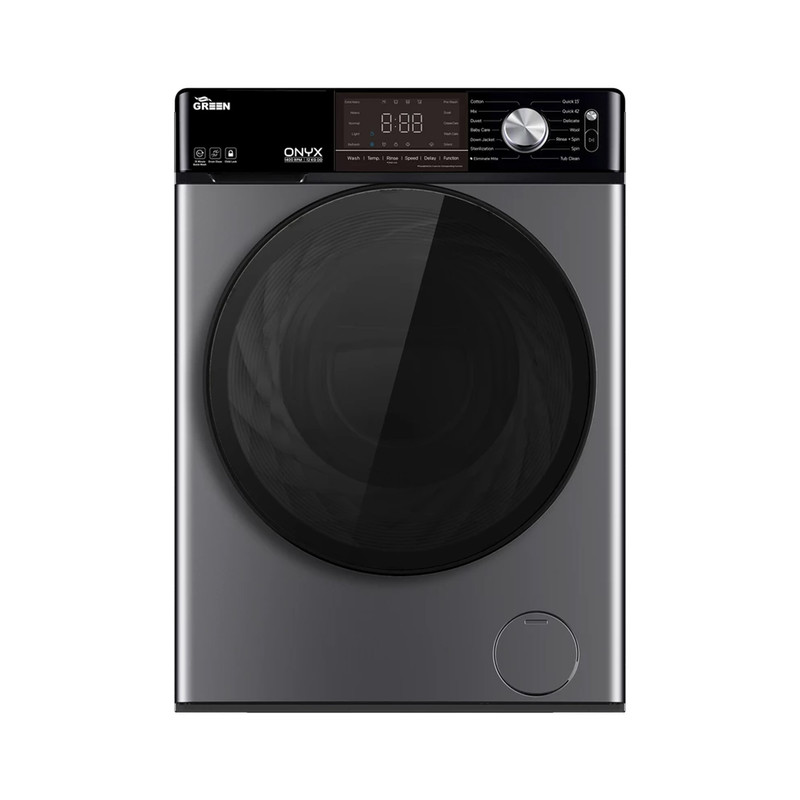 ماشین لباسشویی سری ONYX گرین با موتور دایرکت درایو و ظرفیت 12 کیلوگرم. درزگیر آنتی باکتریال: درزگیـر آنتـی باکتریـال میتوانـد تـا %99 لباسهـای شـما را در برابـر باکتری هـا محافظــت نماید. شستشوی درام: محیــط داخلــی و خارجــی درام بــا دمــای بــالا و جریــان ســریع آب پاکســازی می شــود و آن را در برابــر آلودگی هــای ثانویــه محافظــت مینمایــد. شستشوی بی صدا: عملکــرد بســیار کــم صــدا و بــدون ایجــاد مزاحمــت بــرای خــواب و محیــط اســتراحت شــما. آیا متوجه باکتریها شده اید؟ ایــن مــدل لباسهــای شــما را در برابــر باکتریهــا حفاظــت میکنــد، بــه گونــه ای کــه نــرخ استریلیزاســیون بــه باالتــر از 99/99 % میرســد. درام جادویی ضدزنگ: درام اســتفاده شــده ضــد زنــگ میباشــد و قابلیــت کارکــرد بــا وزن بــالای لباســها بــدون آســیب زدن بــه آنهــا را دارد. طراحی کنترل پنل LED: پنــل LED تعبیــه شــده در دســتگاه تمامــی امکانــات را بــه راحتــی و بــدون خــم شــدن در دســترس کاربــر قــرار میدهــد. روشنایی سه بعدی: نورپـردازی سـه بعـدی بـا طراحـی منحصـر بـه فـرد، عـلاوه بـر کاربـردی آسـان تـر جلـوه زیبایـی را به ماشـین لباسشـویی بخشـیده اسـت. Pre Wash: ایــن برنامــه بــرای شستشــوی لباسهــای خیلــی کثیــف در نظــر گرفتــه شــده اسـت. ایـن عملکـرد لباسهـا را بـا مایـع شـوینده قبـل از شستشـوی اصلـی میشــوید تــا لباسهــا بــه خوبــی تمیــز شــوند.