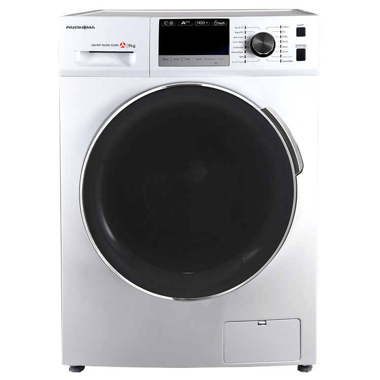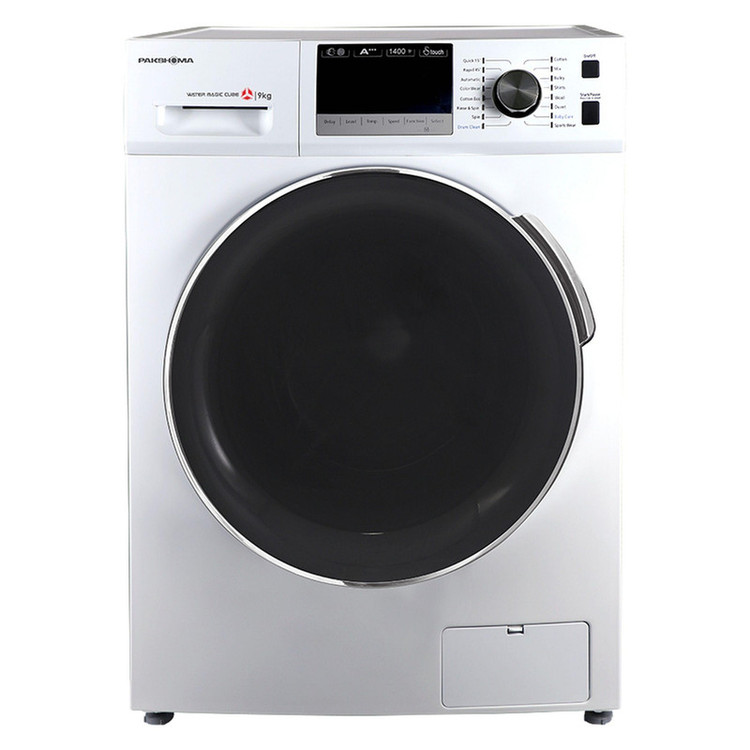 ماشين لباسشويی 9 کيلويی مدل BWF40106WT از لباسشویی های برند پاکشوما است که از موتور اینورتر BLDC با قدرت چرخش شستشو و خشک کردن 1400 دور در دقیقه بهره می برد. برای این مدل لباسشویی پاکشوما ورودی مستقل آب سرد و گرم در نظر گرفته شده که باعث صرفه جویی در مصرف انرژی می شود. ماشین لباسشویی پاکشوما 16 برنامه شستشو اصلی و 5 برنامه کمکی دارد برنامه های متنوع در لباسشویی به کاربر این امکان را می دهد تا کیفیت لباس های خود را حفظ کند و به آن ها صدمه ای وارد نکند. زمانی که فرد برنامه شستشویی را انتخاب می کند به صورت خودکار زمان شستشو، سرعت چرخش، سرعت خشک کن و مدت زمان آبکشی لباس هم تنظیم میشود. برنامه شستو با تاخیر DELAY در لباسشویی تعبیه شده که می تواند زمان شستن لباس ها را از 1 تا 24 ساعت به تاخیر بیندازد. ماشین لباسشویی 9 کیلویی پاکشوما به آبکشی اضافه البسه EXTRA RINSE مجهز شده است این برنامه یک شستشوی اضافی را بر روی لباس انجام می دهد و باعث از بین رفتن مواد شوینده به طور کامل بر روی لباس می شود.