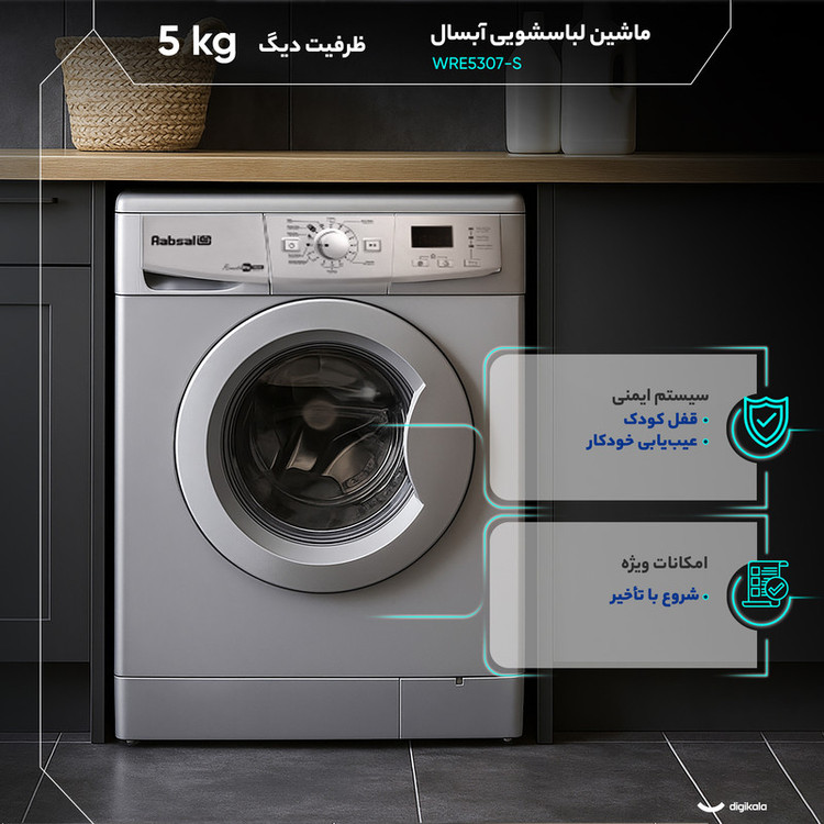 ماشین لباسشویی 5 کیلوگرم اتوماتیک آبسال مدل WRE5307-S