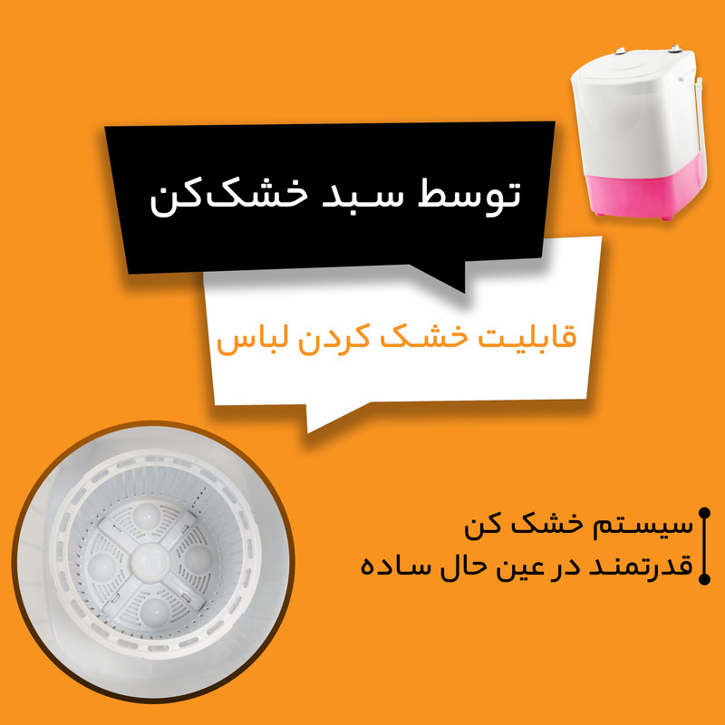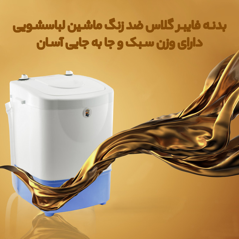 این لباسشویی ظرفیت شستوشو 3.7 کیلوگرم لباس خشک را داشته و بعد از شستوشو میتوانید با استفاده از سبد خشک کن لباس را خشک نمایید. کار با این دستگاه بسیار ساده است و از طریق ولوم های تعبیه شده روی آن می توانید لباس ها را از 1 تا 15 دقیقه مورد شستشو قرار دهید. دستگاه در حالت شستشو یک دور به جهت عقبه های ساعت و یک دور خلاف آن می چرخد تا لباس ها به خوبی تمیز شوند. در حالت خشک کن دستگاه در یک جهت گردش می کند. ورودی آب نیز روی دستگاه تعبیه شده و همچنین تخلیه آب در این لباسشویی به سادگی و با گذاشتن شلنگ کنار آن روی زمین اتفاق می افتد. همینطور این دستگاه قابلیت آبکشی اسلامی لباسها را دارا است.