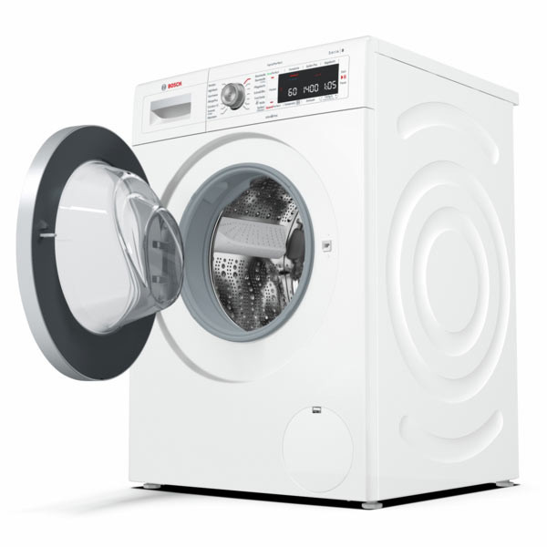 ماشین لباسشویی بوش BOSCH مدل WAW28590 با رده انرژی %30- +++A جزء سری 8 لباسشویی های بوش میباشد که توسط کشور آلمان ساخته شده است. ظرفیت لباسشویی بوش 9 کیلوگرم بوده و مناسب برای خانواده های پر جمعیت است. سرعت چرخش موتور این لباسشویی 1400 دور در دقیقه بوده که شستشوی بینظیری را به ارمغان میآورد. برنامه های شستشوی دستگاه شامل شستشوی البسه تیره ، پیراهن و بلوز ، جین ، البسه ورزشی ، البسه زیر ، شستشوی سریع 15 دقیقه ای ، شستشوی ترکیبی، شستشوی ضد آلرژی، الیاف نخی، الیاف ظریف، الیاف پشمی، شستشوی خودکار دیگ با قابلیت یادآوری، آبکشی و چرخش میباشد. توسط پنل لمسی این لباسشویی نیز دمای آب، میزان دور چرخش موتور ، شستشوی با تاخیر، اتوکشی آسان ، لکه بری و … قابل تنظیم است. توسط قابلیت لکه بری اتوماتیک میتوان لکه های روی البسه را به آسانی از بین برد. توسط شروع با تاخیر میتوانید شستشوی البسه خود را از 1 تا 24 ساعت تنظیم نمایید. در این صورت حتی در زمان هایی که در منزل نیستید نیز میتوان دستگاه را روشن و البسه را شستشو نمود. قابلیت Vario Perfect در این لباسشویی موجب صرفه جویی 65 درصدی در زمان و 50 درصدی در مصرف انرژی میشود. در صورت فراموش نمودن افزودن لباسی برای شستشو یا بیرون آوردن لباس حین شستشو میتوانید از عملکرد توقف استفاده نمایید . در صورت باقیماندن کف روی البسه توسط سنسور تشخیص کف ، شستشو و آبکشی ادامه می یابد. سنسور تشخیص وزن نیز کمک میکند متناسب با میزان البسه درون مخزن ، آب مصرف شود و از اسراف جلوگیری می نماید. طراحی خاص دیواره دستگاه موجب کاهش صدا و از بین رفتن لرزش حین کار میشود.