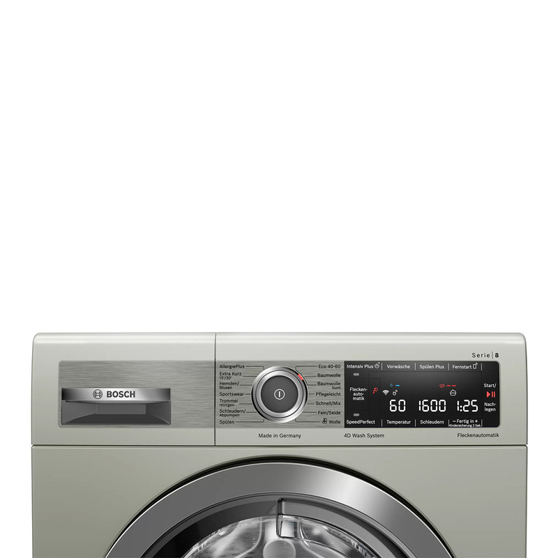 ماشین لباسشویی بوش مدل WAX 32MX0 با رده انرژی A جزء سری 8 لباسشویی بوش است. ظرفیت مخزن دستگاه 10 کیلوگرم است که حجم زیادی از البسه را در هر بار استفاده شستشو میدهد. 14 برنامه شستشوی دستگاه شامل شستشوی اتوماتیک ، ضد آلرژی ، الیاف نخی، پشمی، ظریف، پیراهن، شستشوی سریع، آبکشی و چرخش، آبکشی و شستشوی دیگ میباشد. توسط پنل نیز میتوان میزان چرخش موتور، آبکشی اضافی، پیش شستشو ، دمای آب ، برنامه مخصوص لکه بری، شستشو با تاخیر و … را تنظیم نمود . قابلیت Intensive Plus ویژگی جدیدی در لباسشویی های بوش میباشد که توسط سیستم شستشوی 4 بعدی موجب شستشوی بی نظیر البسه حتی با مخزن پر میشود . ویژگی منحصر به فرد این لباسشویی Home Connect میباشد که توسط آن میتوان از طریق گوشی هوشمند دستگاه را روشن نمود و برنامه شستشو را تنظیم کرد. در صورت باقیماندن کف بر روی البسه توسط سیستم تشخیص کف، شستشو و آبکشی ادامه می یابد.