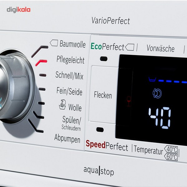 ماشین لباسشویی بوش مدل WAW28540 با ظرفیت 8 کیلوگرم از مدلهای باکیفیت و کارآمد ماشین لباسشویی است که توسط شرکت بوش عرضهشده است. این ماشین لباسشویی راندمان بسیار بالایی دارد تا حدی که مصرف انرژی آنها A+++ تعیینشده است. مصرف پایین برق و آب بهصورت میانگین سالانه تایید کننده بالابودن راندمان این دستگاه نیز است. بدنه این محصول به رنگ سفید است و کیفیت بالای ساخت آن زیبایی خاصی به محل استفاده میبخشد. ماشین لباسشویی بوش مدل WAW28540 با ظرفیت 8 کیلوگرم در جلو دارای در است که محل بارگیری ماشین است. زاویه باز شدن در مناسب بوده و قرار دادن البسه در ماشین بهراحتی انجام میشود. اتصالات و قفل محکم و باکیفیت در این مدل هیچ نگرانی برای مصرفکننده بهجا نمیگذارد. برنامههای مختلف شستشو از پیش تعریفشده است و تنها با چرخاندن پیچ تنظیم، برنامه موردنظر انتخاب میگردد. تنظیمات بیشتر توسط دکمهها انجام میشود و دستگاه برای شستشو هر نوع پارچه و البسهای تنظیم میگردد. بهرهگیری از سیستمهای ایمنی و افزاینده بهرهوری در ماشین لباسشوییهای بوش باعث میشود تا استفاده از دستگاه نهتنها راحتتر باشد بلکه بهصرفه نیز باشد. این ماشین لباسشویی سروصدای کمی نیز دارد و صدای مرحله شستشو و خشککن آزاردهنده نمیباشد. این دستگاه دارای قفل ایمنی کودک نیز است تا کودکان کنجکاو احیانا دستگاه را روشن نکنند و خطری ایجاد نشود. بوش از تولیدکنندگان مهم لوازمخانگی بزرگ و کوچک در سراسر جهان است که با تولید و عرضه محصولات باکیفیت همواره در لیست خرید مصرفکنندگان قرار داشته است.