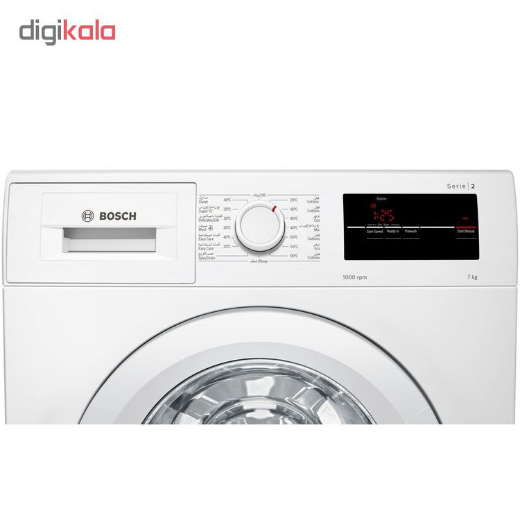 ماشین لباسشویی «بوش»، مدل «WAJ20170GC» با ظرفیت 7 کیلوگرم از محصولات باکیفیت شرکت بوش است که ضمن برخورداری از فناوریها و قابلیتهای متعدد، میتوان آن را یکی از اقتصادیترین و کممصرفترین ماشینهای لباسشویی به شمار آورد. این دستگاه از سنسور آب و فناوری ActiveWater بهره میبرد تا ضمن کنترل خودکار میزان البسه کثیف، از مقدار آب لازم استفاده کند و موجب صرفهجویی در مصرف آب و انرژی شود. برچسب انرژی ماشین لباسشویی بوش، مدل WAJ20170GCنشان از مصرف بسیار پایین این مدل دارد. این مدل از سیستم VarioPerfect نیز بهره میبرد که موجب میشود با توجه به برنامههای متنوع قابل انتخاب، تا 60 درصد در زمان و تا 25 درصد در مصرف انرژی معمول دستگاه صرفهجویی شود. صفحهنمایش زیبا، نمایانگر عملکرد و اطلاعات برنامههای انتخابشده است. برنامهها و آپشنهای دستگاه توسط دکمهها و پیچ تنظیم، قابل انتخاب هستند. محل ریختن پودر و مواد شوینده در سمت دیگر پنل جلویی است که با کشیدن باز شده و در دسترس قرار میگیرد. در پایین نیز محل فیلتر آب خروجی قرار گرفته که هر چند وقت یکبار نیاز به تمیزکردن دارد تا مواردی مانند مو یا نخ اگر در آن گیرکرده باشد تمیز شود. گفتنی است شرکت بوش (Bosch)، از شرکتهای شناختهشده در تولید و عرضهی انواع محصولات و لوازم برقی بهویژه لوازم برقی خانگی است که طی سالها، با عرضهی محصولاتی که از بیشترین کیفیت و نوآوری بهره میبرند، به یکی از برترین و محبوبترین برندهای این گروه محصولات تبدیل شده است.