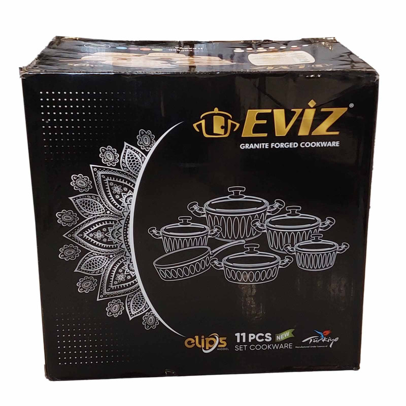 سرویس قابلمه الیپس 11 پارچه هست که دارای 4 قابلمه در سایز های :18-22-26-30 و یک تابه دودسته دربدار سایز 30 و یک تابه تک دسته در سایز 30 می باشد.این سرویس گرانیتی است و ضد خط و خش دارای سوپاپ خروج هوا و در رنگبندی های مختلف تولید شده است.